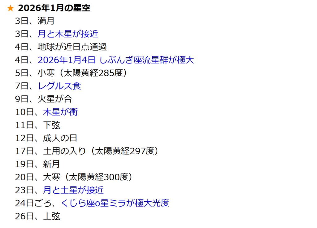 - 2026年1月の天文現象
