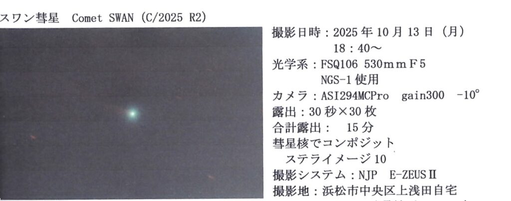 スワン彗星(C/2025R2)は9月12日に近日点を