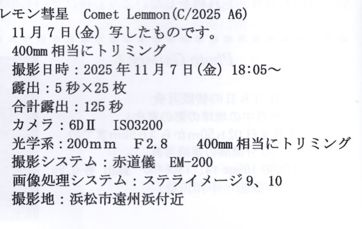 明るく尾を伸ばす彗星の雄姿をお楽しみ