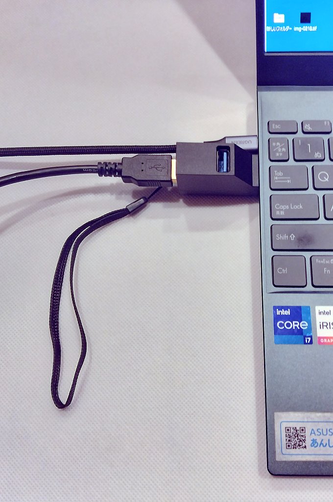 撮影に使っているノートPCはですね、USB-A端子