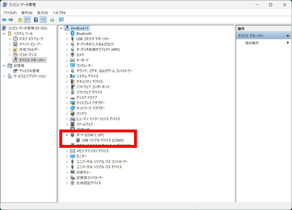 シリアル デバイス(COM3)」といったものが追加