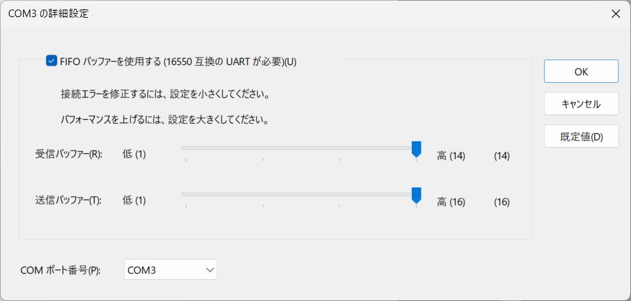 「COM3 の詳細設定」の内容も確認します。
