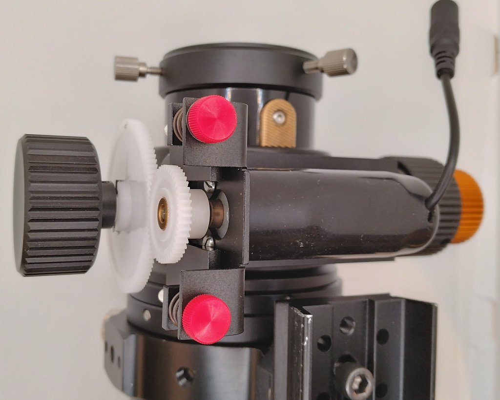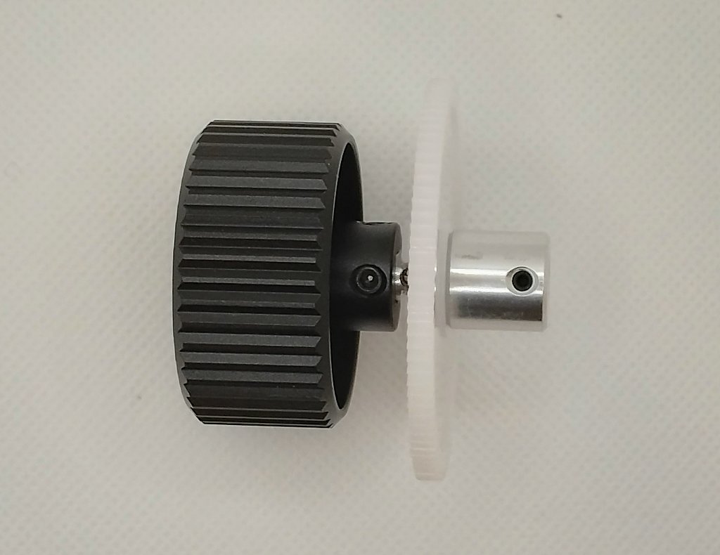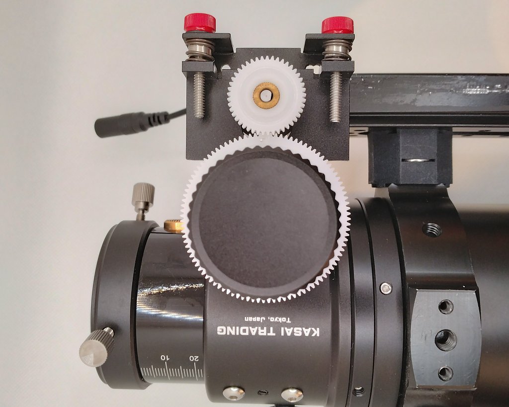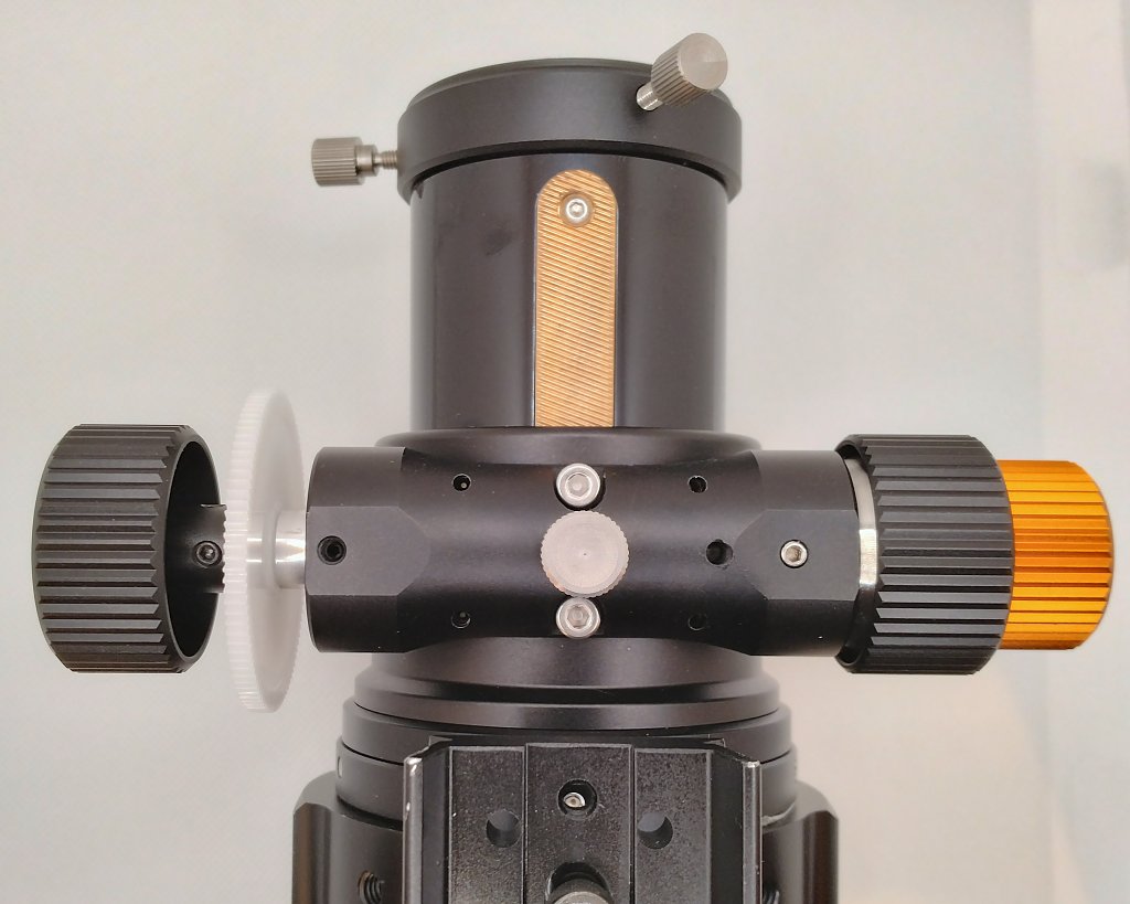 大きなギヤを取り付けたノブを接眼部のシャフトに