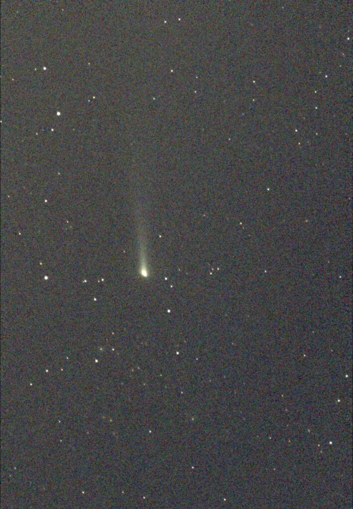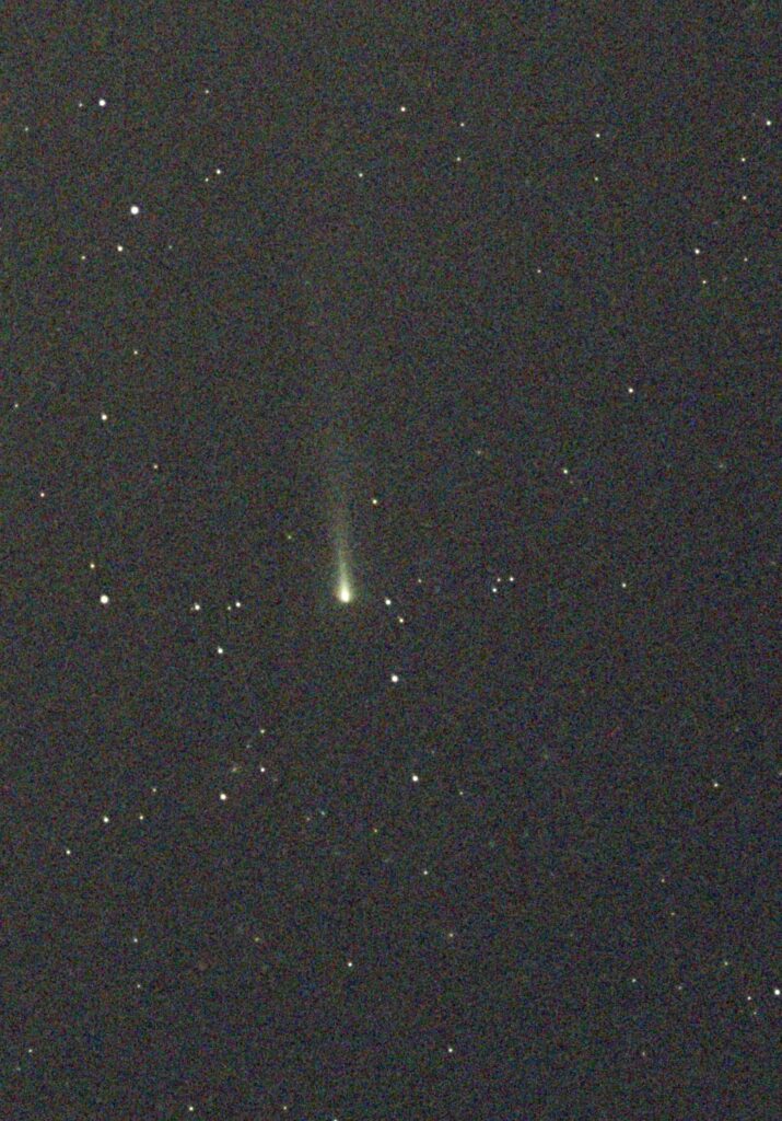 数分の露出で明るい彗星頭部と長い尾が見えます。