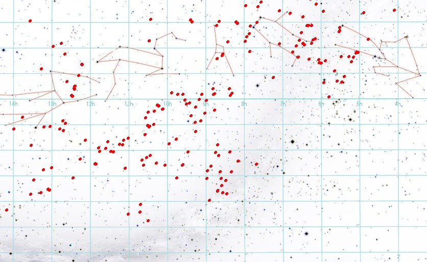 黒背景の製図だと大円交点の分布がまばらすぎて