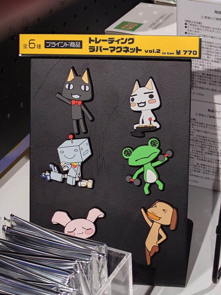 かわいいグッズや過去の懐かしいキャラクターグッズが並んでい