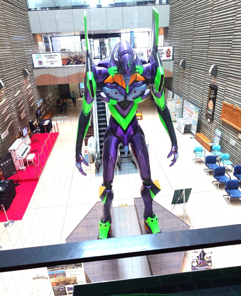 浜松市役所のロビーに巨大なエヴァンゲリオン初号